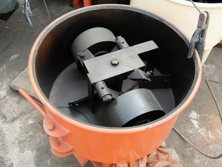轮碾机是聚轮碾和搅拌为一体的多功能机,它适应混合各种干湿物料及胶状物如耐火泥、黏土、粉煤灰,尾矿渣、炉渣、型砂等,广泛地用于耐火材料,陶瓷,建材等行业,其工作程序是电机带动立轴上的行星箱,行星箱两端之下各装有一组搅拌铲,搅拌铲以一定的速度绕立轴作顺时针方向公转,同时两组搅拌铲(每组三块或四块铲板)分别以一定的速度绕各自的轴芯作逆时针方向自转,另外两只碾轮按顺时针方向对不断翻动的物料进行碾压。这种工作方式同时具备了碾压,搓揉,搅拌功能,具有快速均匀,不结团,无死角,能耗低的特点,是国内几种同类机型无法同时具备多种特点于一身的新型轮碾搅拌设备。搅拌效果好、生产效率高、节能效果显著、密封性好、无环境污染,适应性强。经生产实践证明,本设备技术性能优于国内同类产品,可替换各行业的碾炼设备(如湿碾机,大石碾)和搅拌设备是碾炼、搅拌设备中理想的更新换代产品。